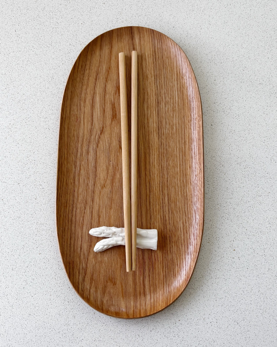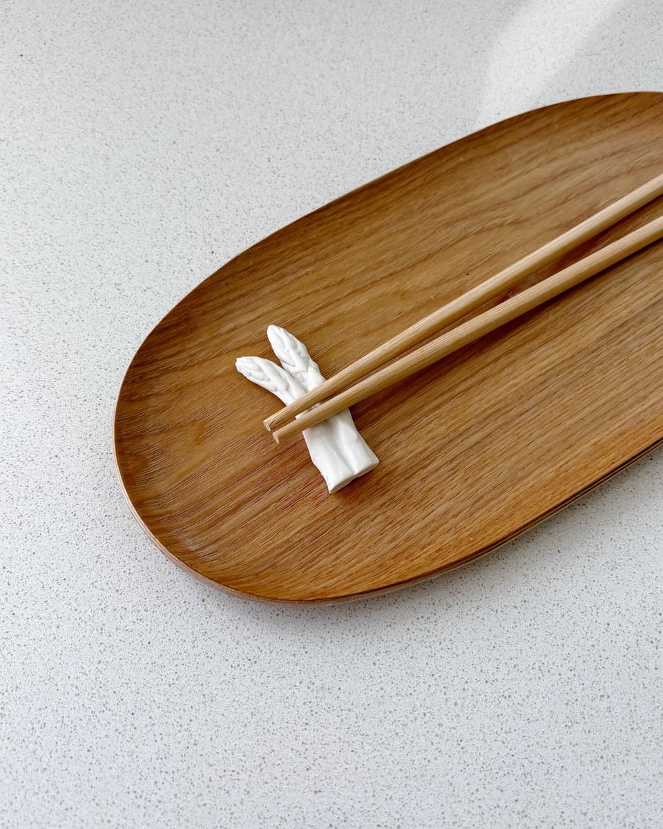 Set of 4 porcelain chopstick rests, natural biscuit finish.