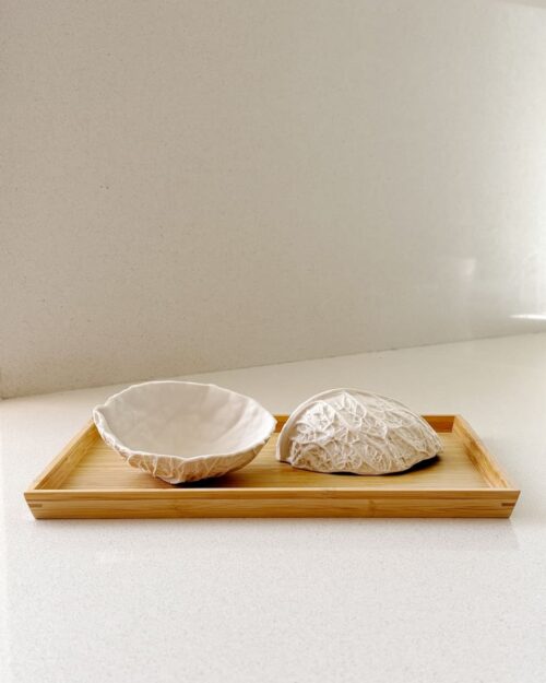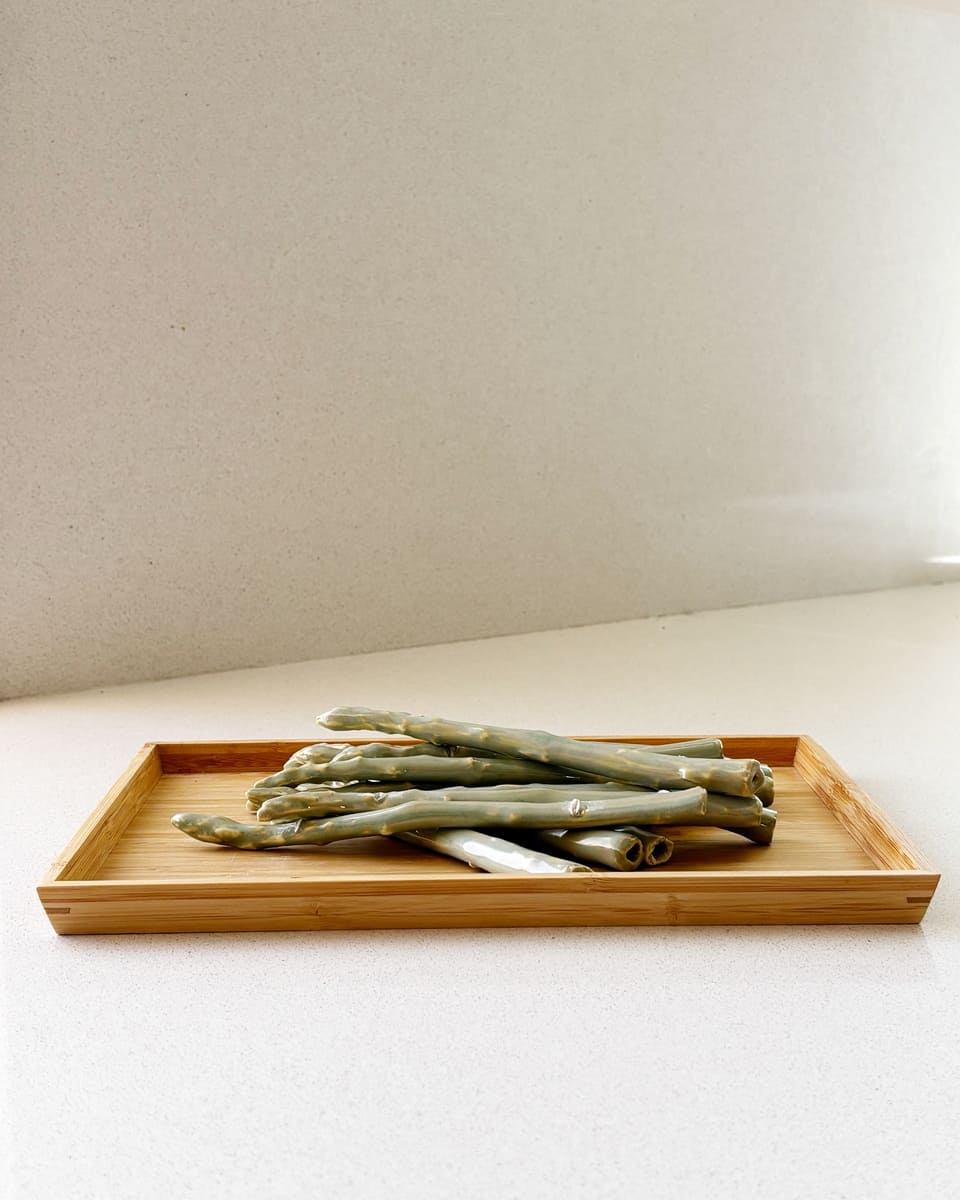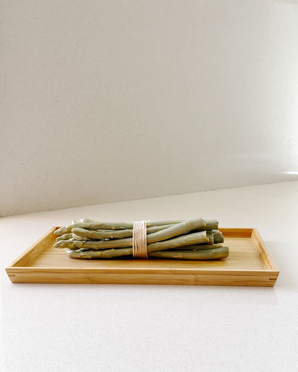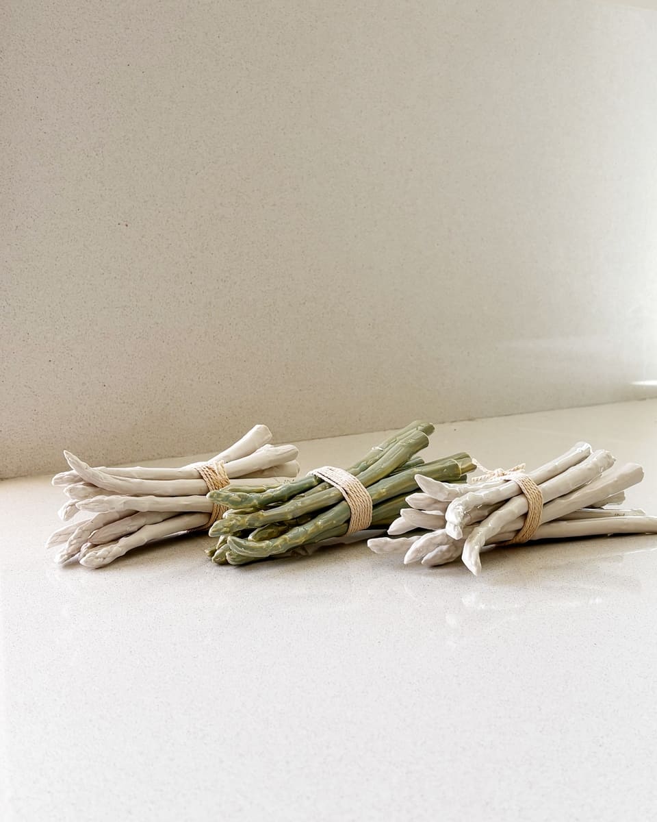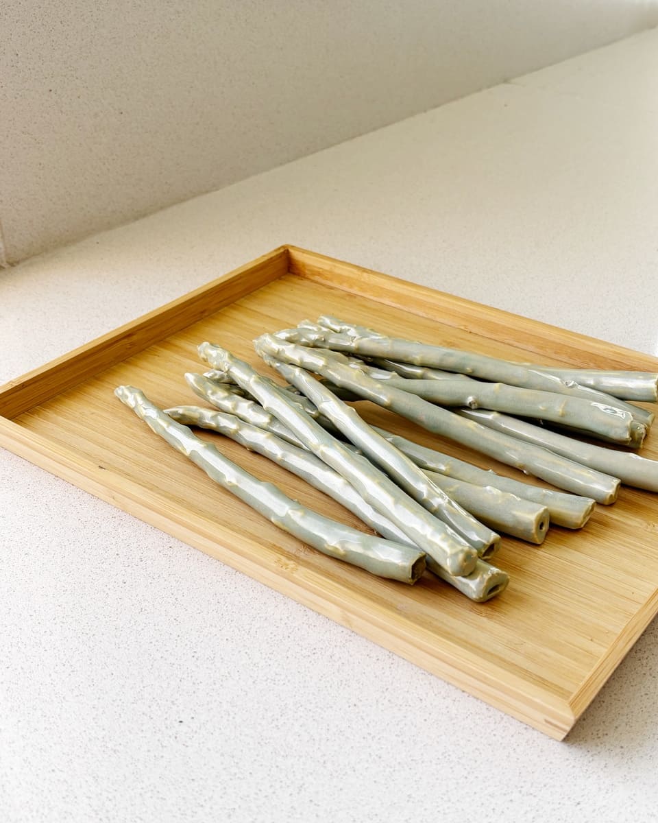 Handcrafted using a plaster mold made by myself from natural asparagus.