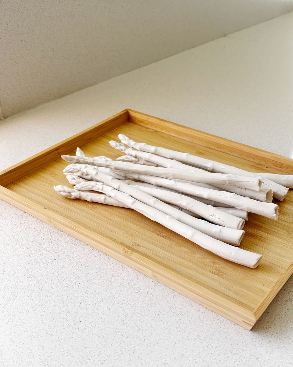 Porcelain Asparagus Bunch. Natural Biscuit.