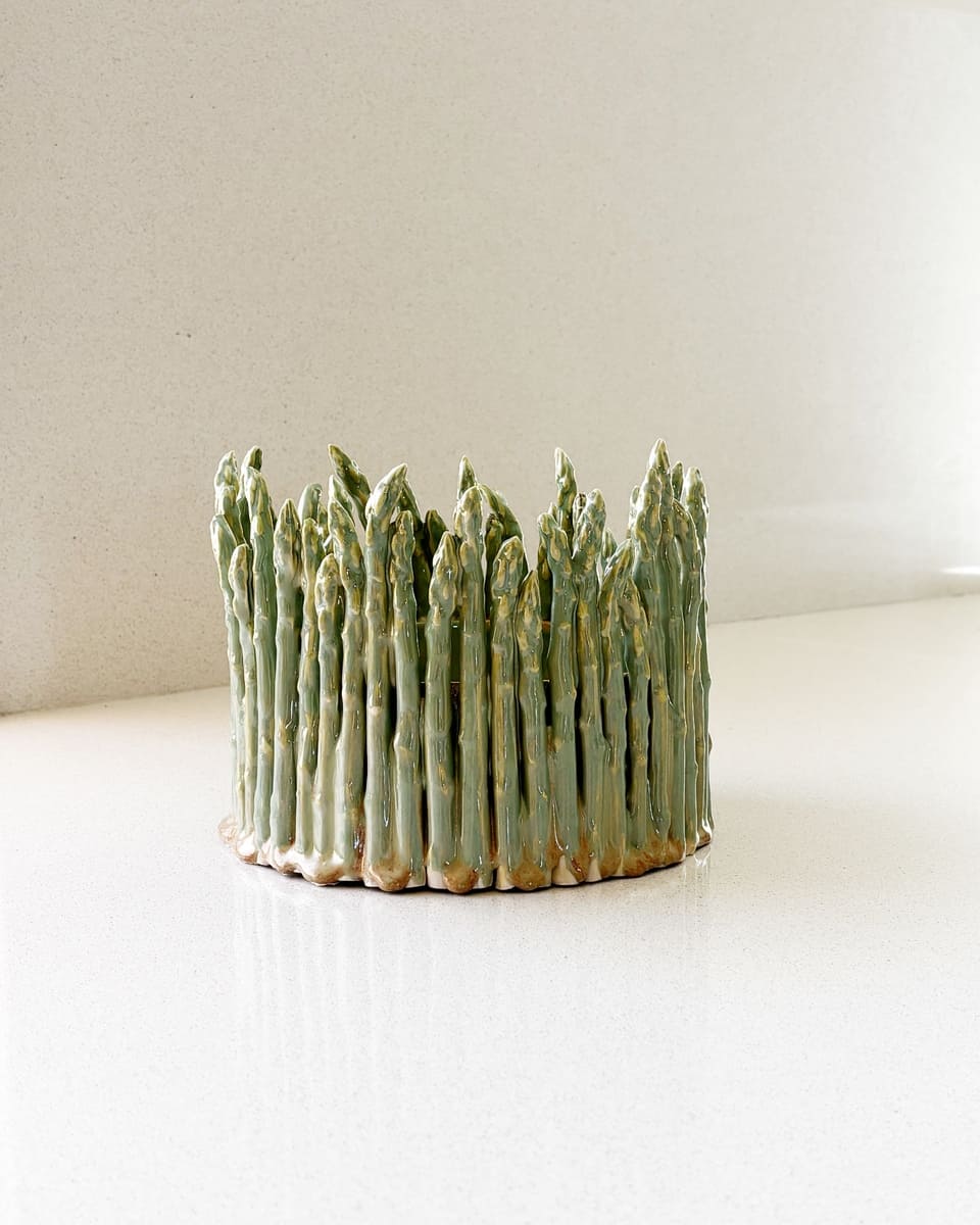 Handcrafted using a plaster mold made by myself from natural asparagus.