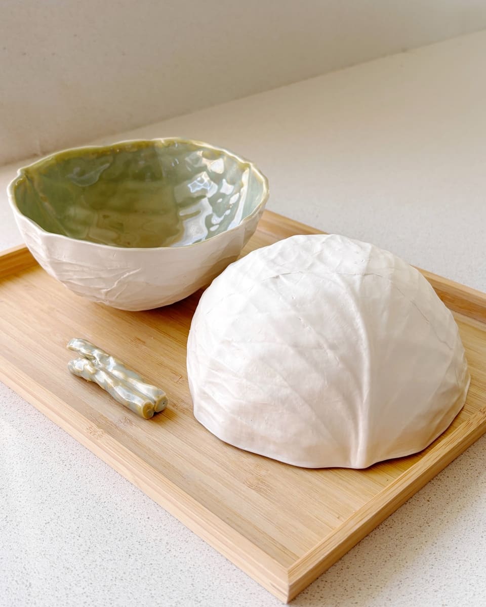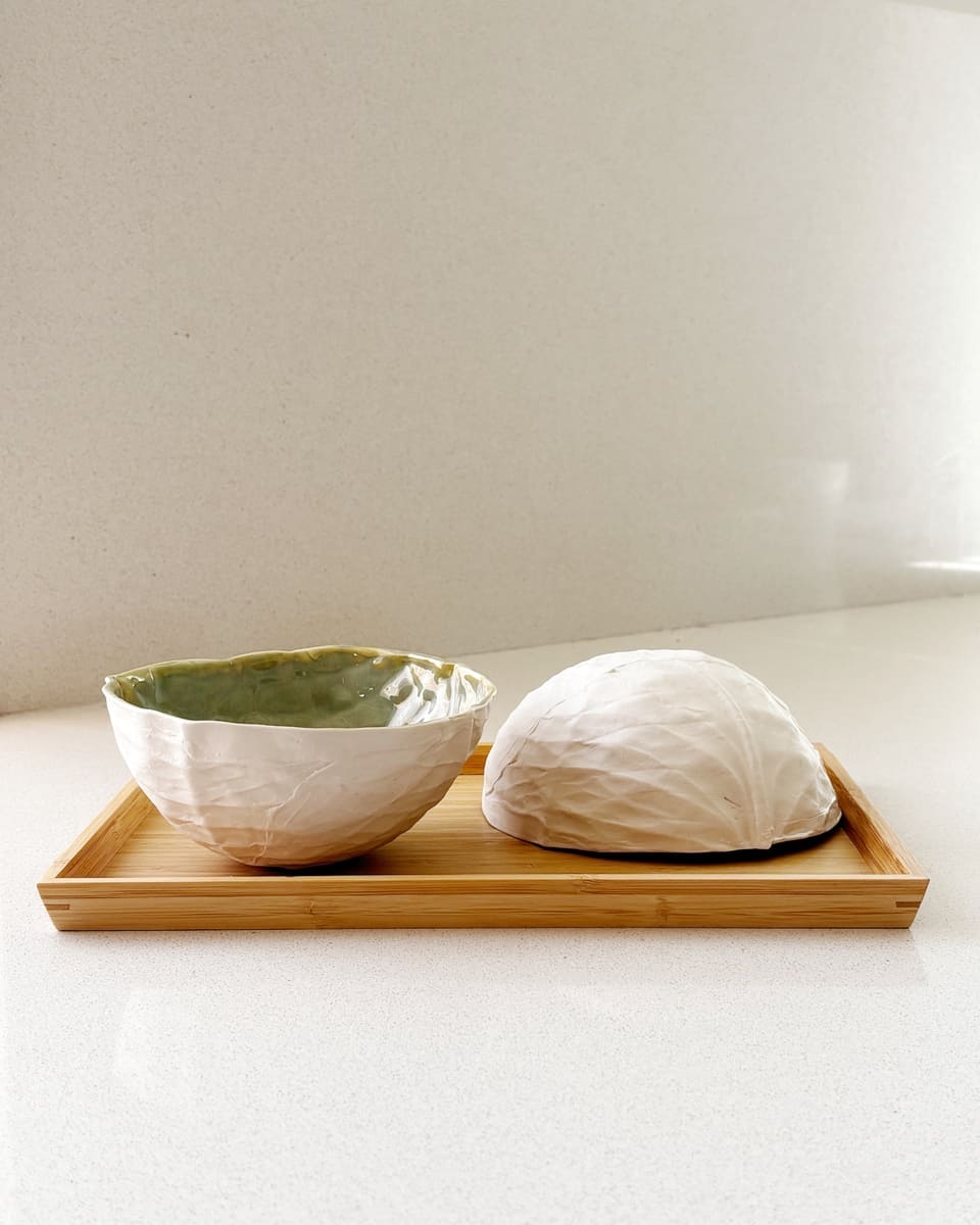 Made from a plaster mold I created from a natural cabbage leaf.