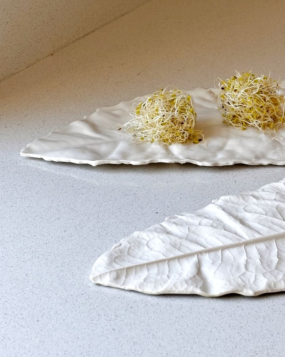 Created from a plaster mold of a real leaf, where each vein is captured with extraordinary realism.