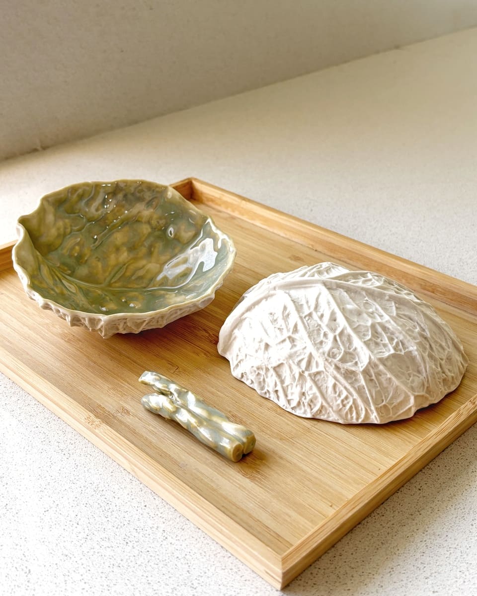 Made from a plaster mold I created from a natural Savoy cabbage leaf.