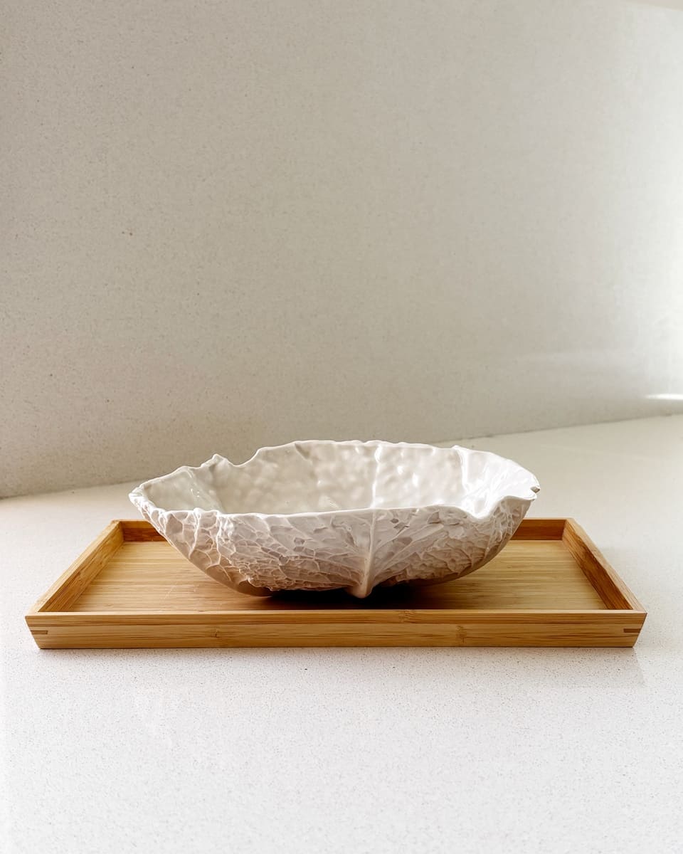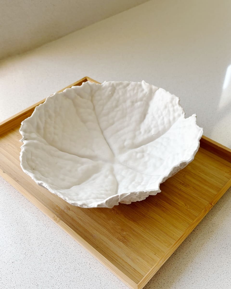 Made from a plaster mould created by me from a natural cabbage leaf.