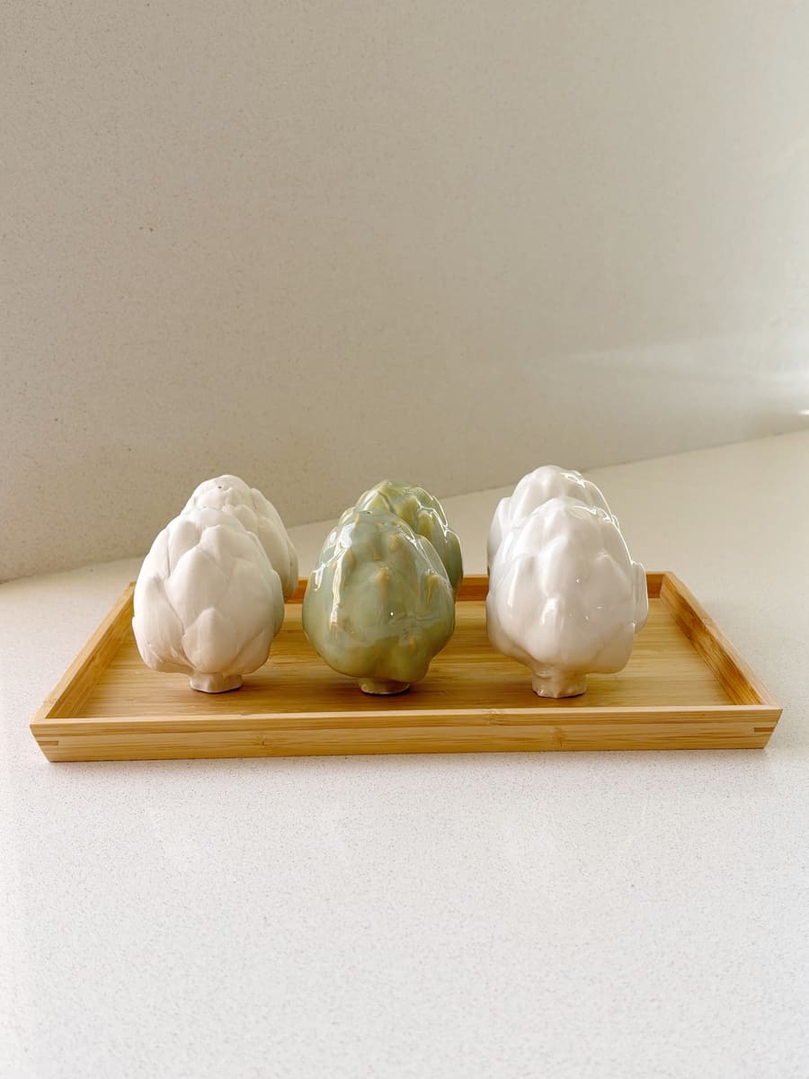 All the pieces are handmade by me. They may have small variations in finish and size.